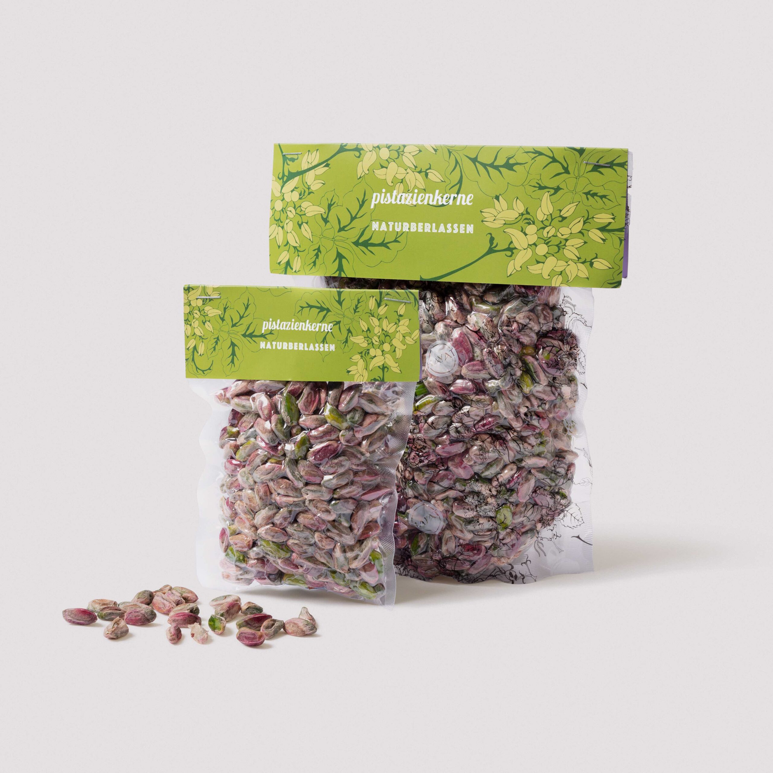 Pistazienkerne naturbelassen. Gewichtsangabe netto.